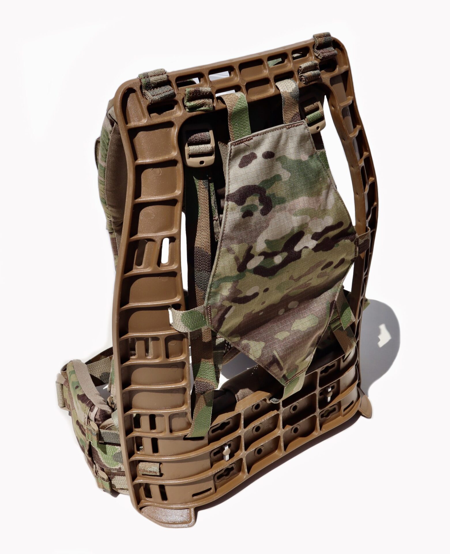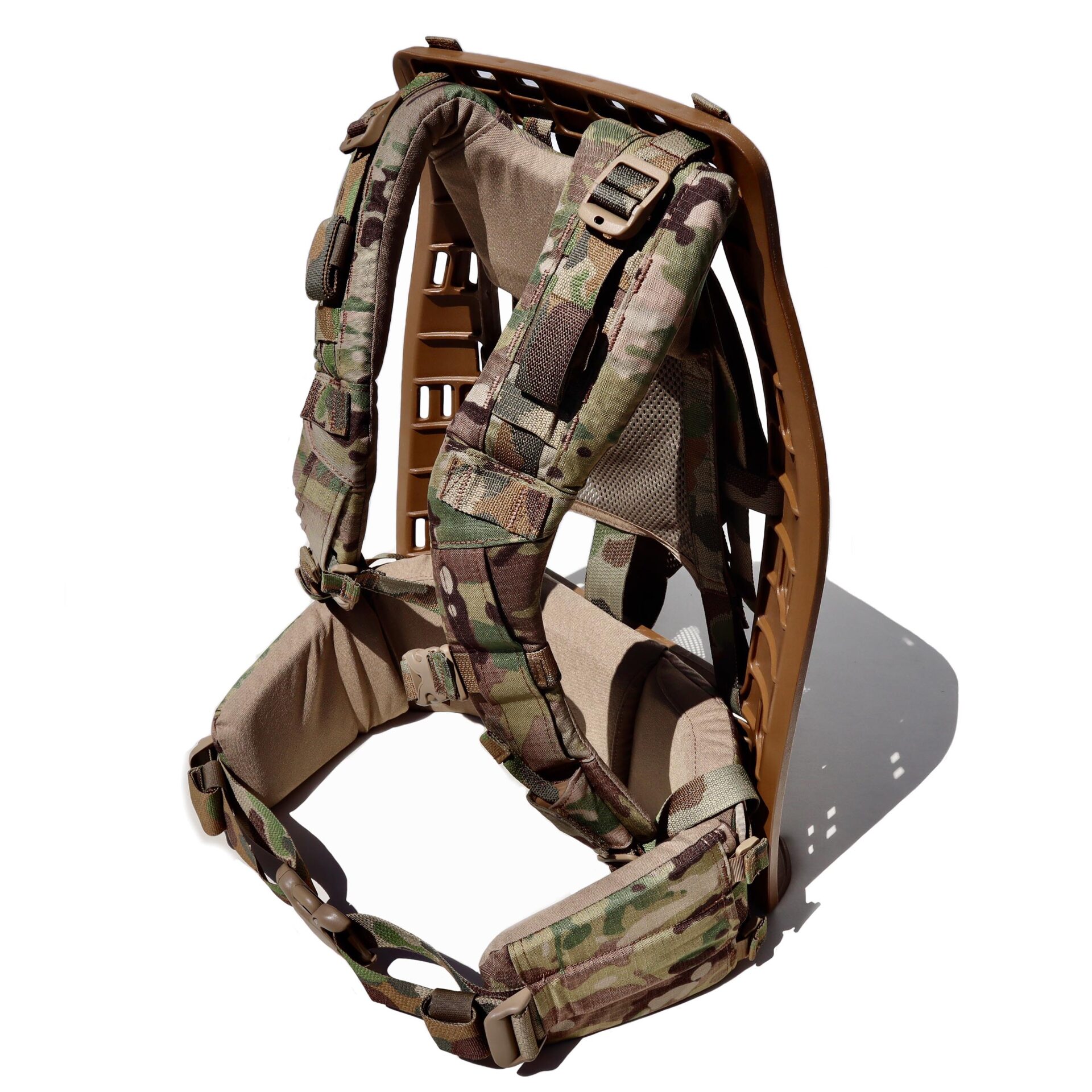 The DG16 frame system embodies everything we have learned in three decades. The culmination of polymer chemistry, engineering and biomechanics have created an experience on your back like no other suspension system to date. Our contoured harness is tailored with extra thick padding providing the ultimate experience for comfort by preventing hots spots and reducing areas of friction. Our frame is flexible where needed, yet tough as nails where the resultant forces present heavy loads. This patented design will efficiently distribute forces through the frame while simultaneously reducing human fatigue.