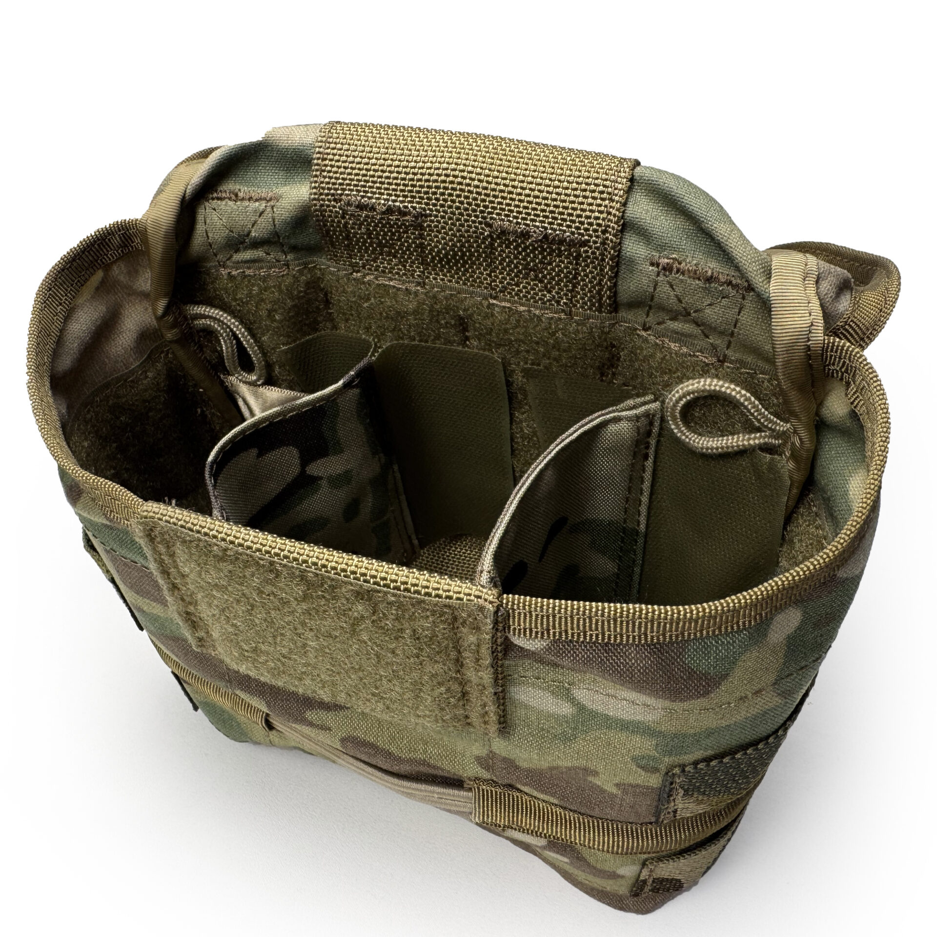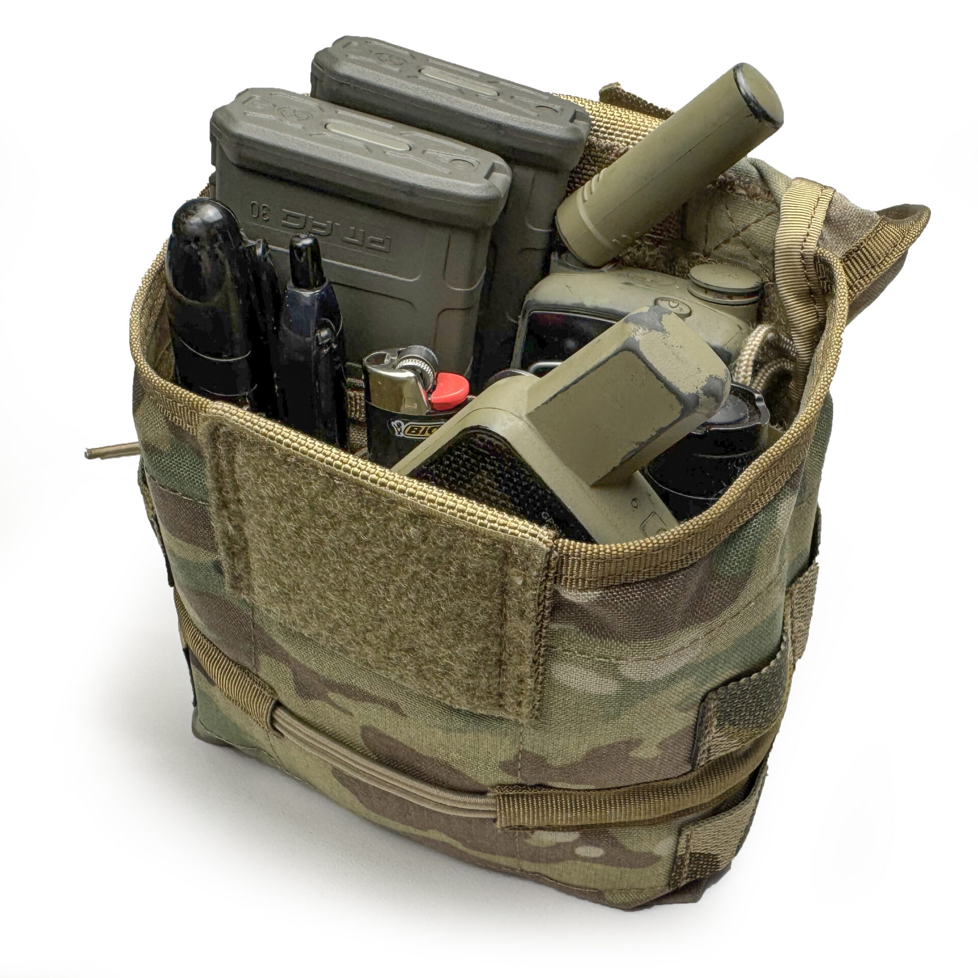 Introducing the “Butter Bar”. Guaranteed to never get your men lost on an FTX again. This commander’s pouch is incredible, it comes with 3 removable dividers to organize anything to your hearts content. Use it for land nav, pens, compass, headlamp, GPS, mags, frags, you name it. If you need it for business, the Butter Bar has you covered, fit smokes, 6 mags, or 200rds of belt fed. Like all of our lids, it features our three levels of retention for extra security and silent opening when noise discipline is needed.