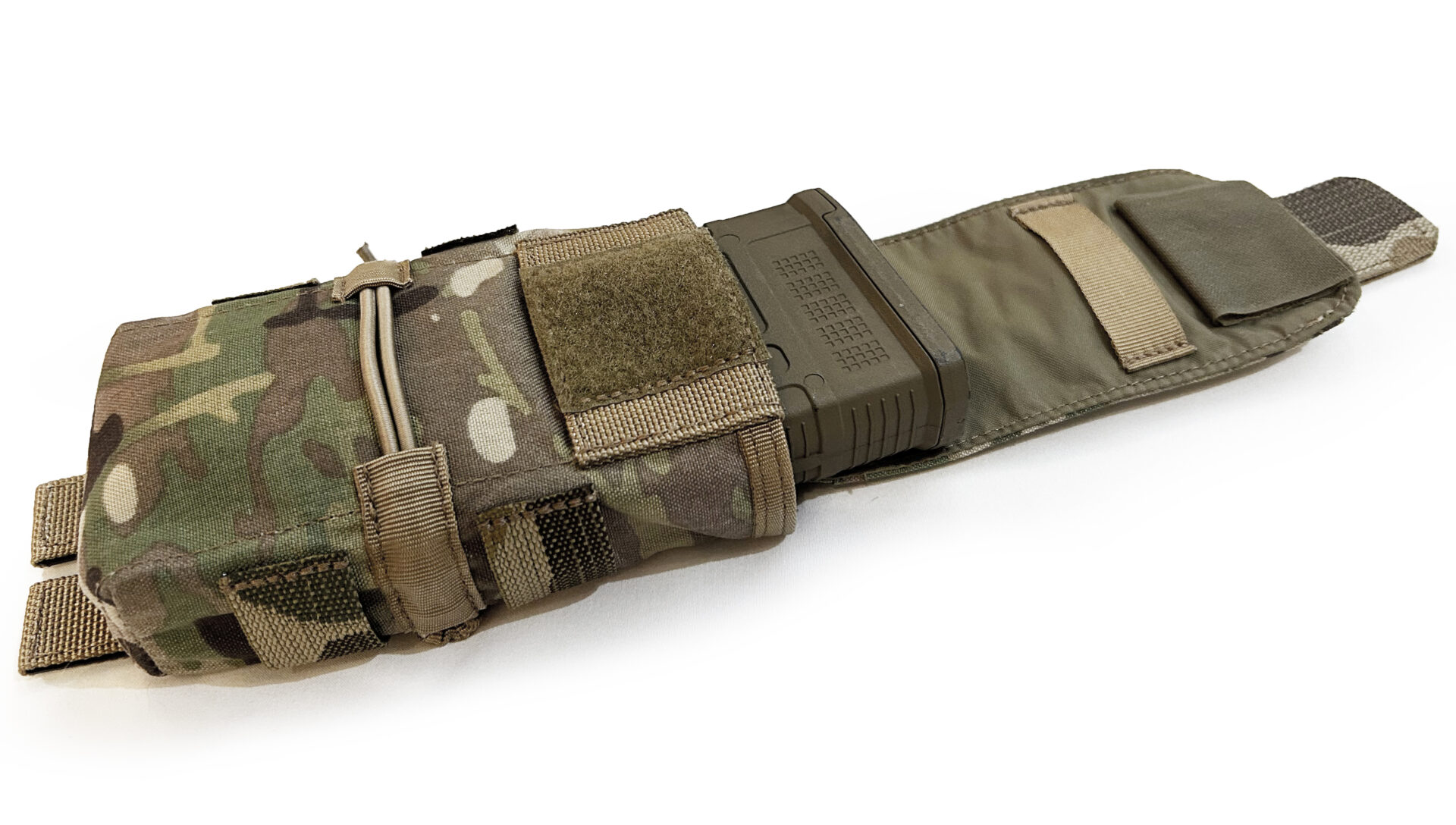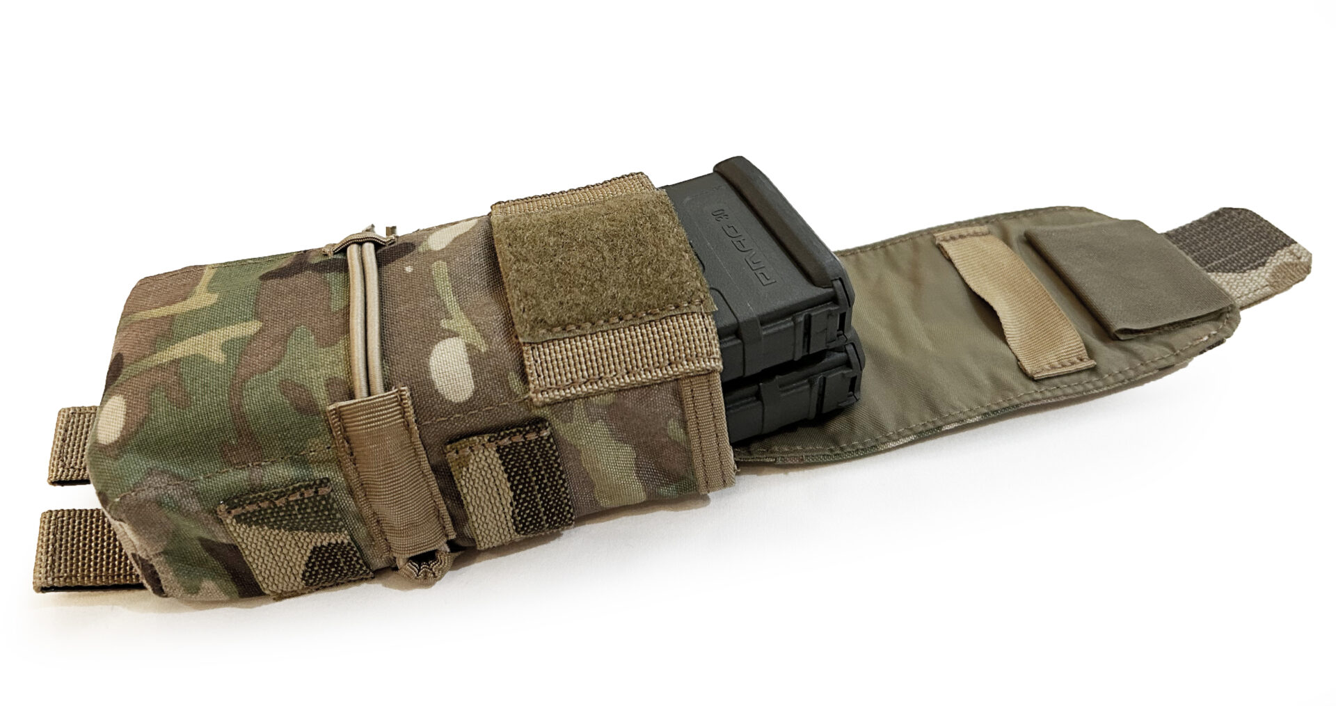 The Pouch is one of our most versatile designs. It can be used in several configurations of retention; closed top, open top, bungee top, Velcro and silent. Making it the perfect single 25rd .308 pouch in its class. In its open top configuration, it can hold several other items including various radios and equipment.